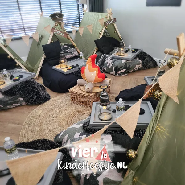 Tipi slaapfeestjes zijn kinderfeestjes waarbij kinderen samen blijven slapen in kleine tipi tentjes die binnen in huis worden opgezet. Iedere deelnemer krijgt een eigen tent met een luchtbed, kussen en dekbed. Hierdoor ontstaat een gezellige sfeer en voelt het alsof de kinderen samen op een kleine indoor camping slapen. Bij VierJeKinderfeestje.nl kun je complete tipi slaapfeestjes huren met tentjes, accessoires en verschillende thema’s.